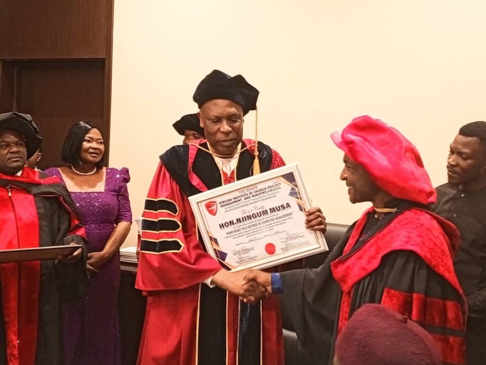 Hon. Njingum Musa, the Questor and Member of Parliament for Ngoketunjia North Constituency, has been awarded an honorary Doctor of Philosophy (PhD) degree in recognition of his outstanding contributions to the community. The award ceremony was a testament to Hon. Njingum’s tireless efforts and dedication to improving the lives of his constituents.