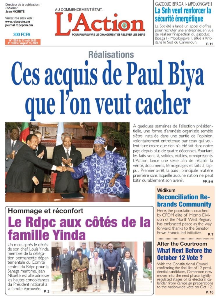 A quelques semaines de l’élection présidentielle, une forme d’amnésie organisée semble s’être installée dans une partie de l’opinion, volontairement entretenue par ceux qui veulent faire croire que rien n’a été fait dans notre pays depuis plus de quatre décennies. Pourtant, les faits sont là, solides, visibles, omniprésents. L’Action, lance une série afin de rétablir la vérité, documents, témoignages et faits à l’appui. Premier arrêt, la paix ; principale matière première sans laquelle aucune nation ne peut bâtir durablement son avenir. P.P. 8-9.