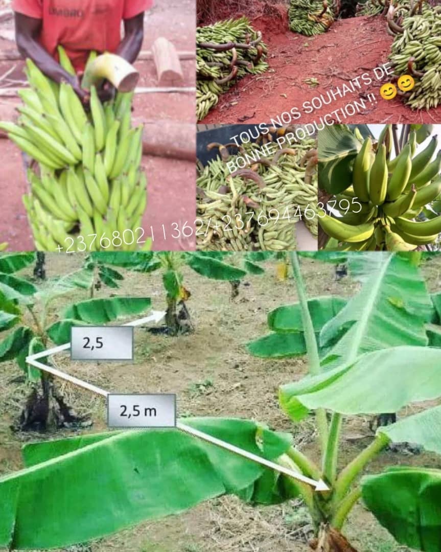 Pour un hectare de bananeraie qui correspond à 10000m2 par exemple, le système traditionnel propose 3m x3m, soit 1111 plants sur un hectare, par contre le système intensif propose 2,5m x 2,5m, soit 1600 pieds par hectare et aujourd’hui, le système de haute densité  propose 2m x 2m,  ce qui équivaut à 2500 pieds à l’hectare. Et pour chacune de ces options, le choix ne se fait pas au hasard.  La haute densité par exemple donne la possibilité d’avoir plus de plants par unité par surface. Ce qui équivaut à un rendement élevé en cas d’optimisation, mais la compétition est accrue pour l’eau et les nutriments, il nécessite donc des sols riches en matière organique et un suivi rigoureux.
